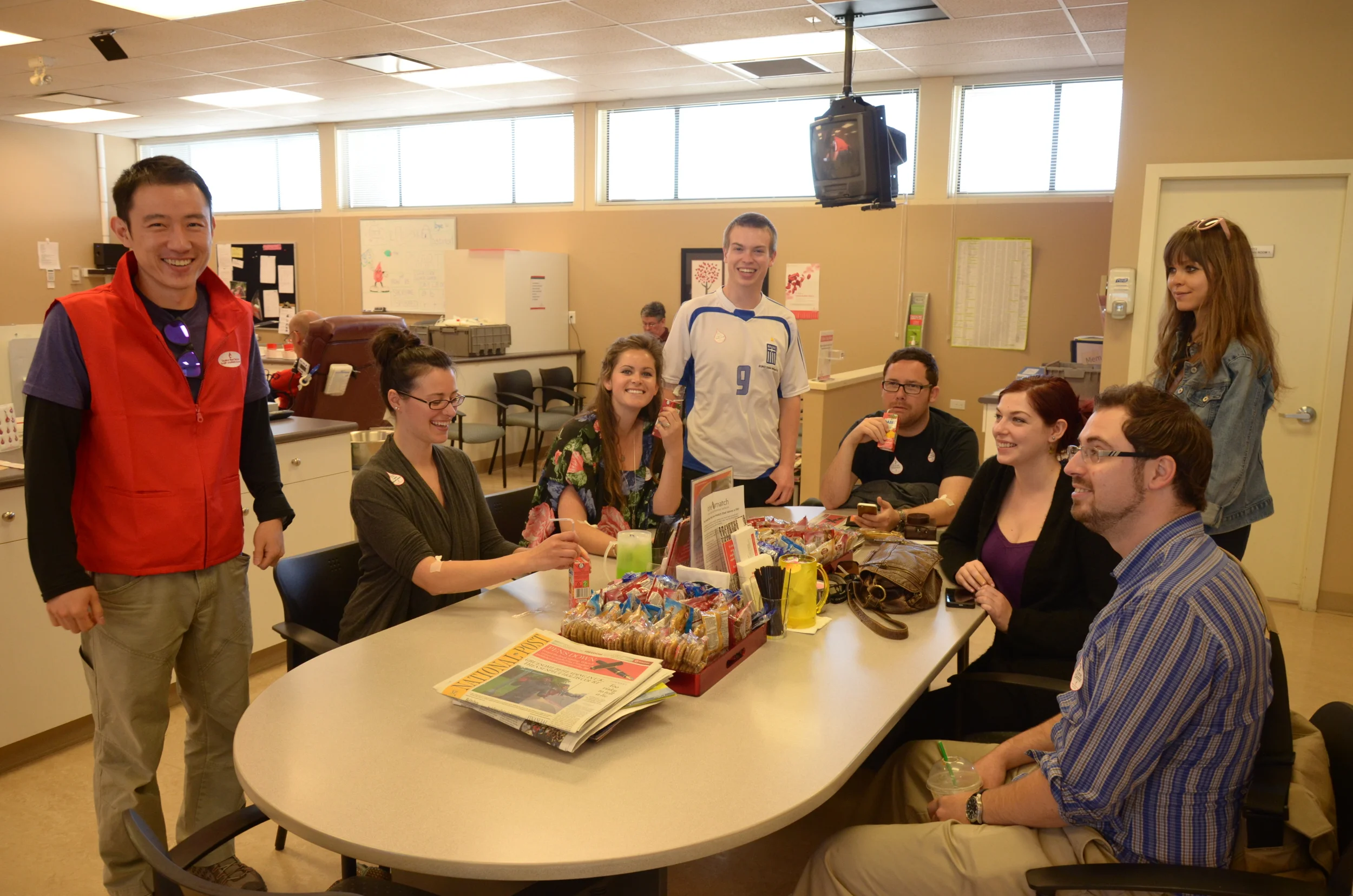 Our team thought we'd help the cause – we're a diverse bunch and our blood reflects it! Our Marketing Coordinator even has the very rare AB Negative blood type, which he shares with only about 0.5% of all of North America. Plus, an adventure out of the office with your friends/co-workers to give blood?
