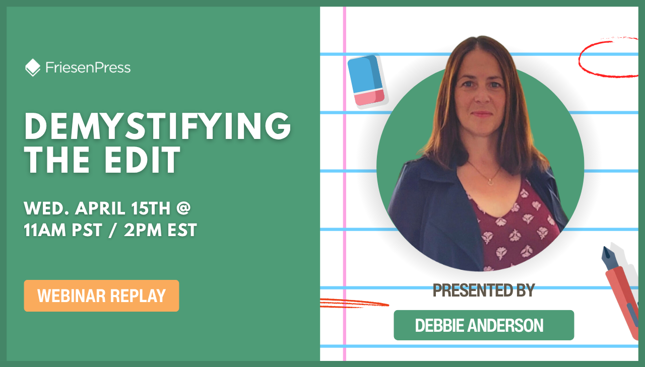 Hi everyone! I’m Debbie Anderson, an Employee Owner and Publishing Consultant here at FriesenPress. I’ve spent nearly 14 years helping authors navigate the publishing journey, and that journey almost always starts with editing.