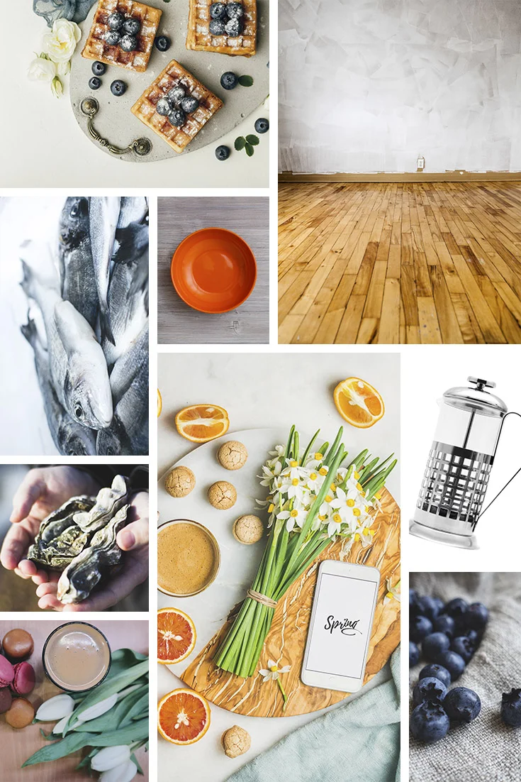 Sometimes called “inspiration boards”, moodboards are visual collages that help creatives focus on certain visual cues or styles for a given project. Graphic designers, photographers, and interior designers are examples of artists who regularly use moodboards. See below for an example: