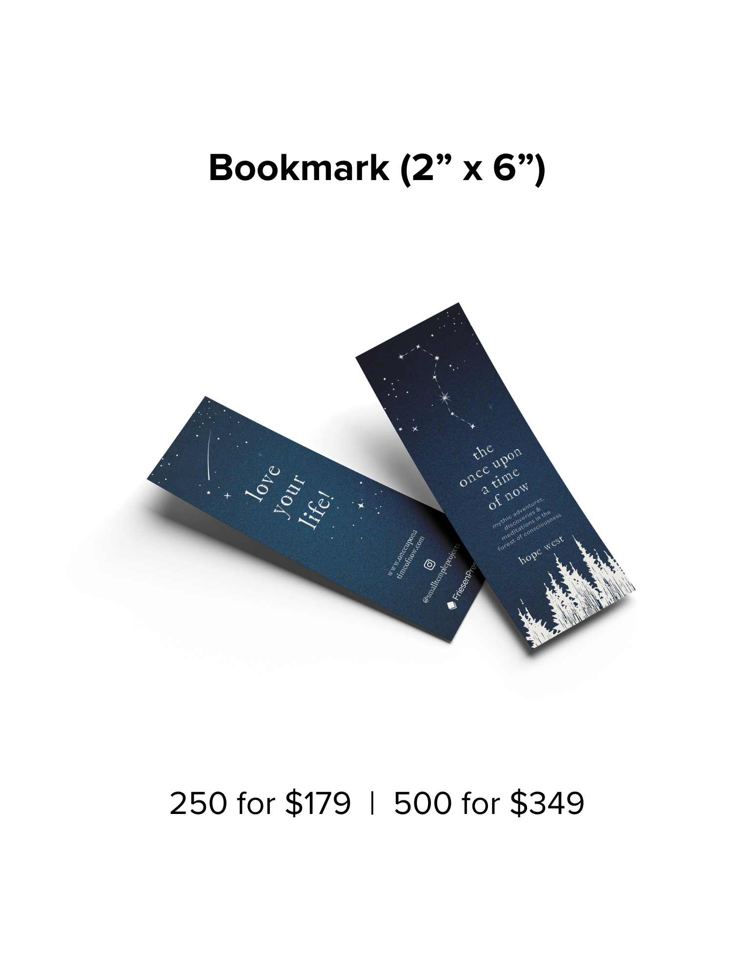 For $169, your book designer creates your chosen Branded Print Material and provides you with the digital print files. Your order includes one revision round, print ready files with standard bleed, and a standard high resolution JPG file. The design of additional print materials can be added for just $69 each.